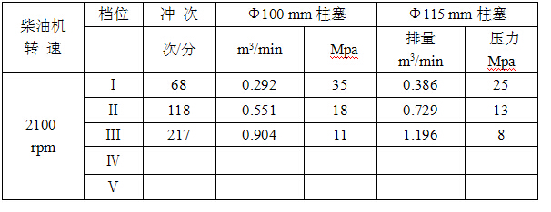 沖程:200 mm 柱塞直徑:Φ100、115 mm 減速器配比:3.06