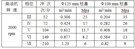 最大壓力:35 Mpa 最大排量:1.2 m3/min